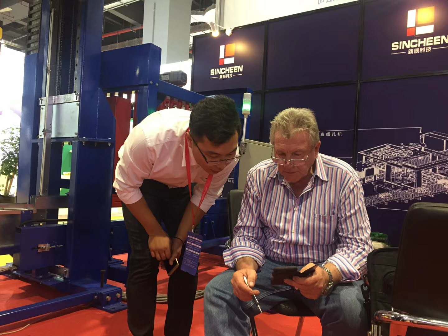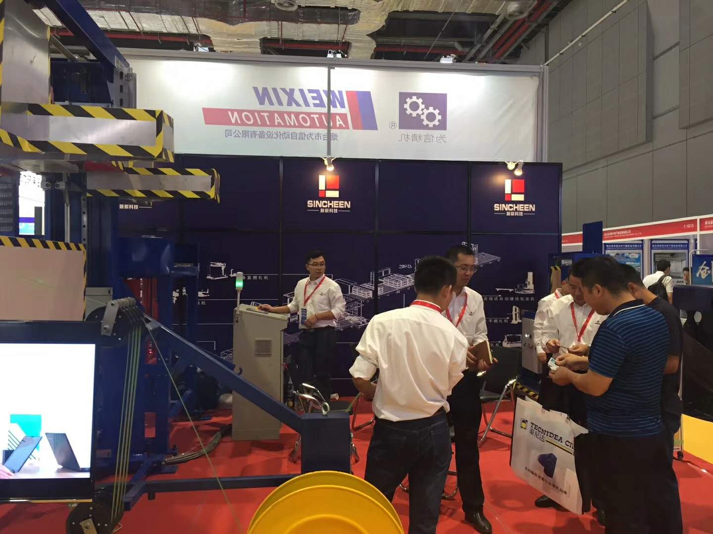我司于國(guó)內(nèi)率先研發(fā)的集自動(dòng)加護(hù)角、墊條、打帶于一體的自動(dòng)化包裝系統(tǒng)在展會(huì)上閃亮登場(chǎng),展會(huì)現(xiàn)場(chǎng)一片繁忙、、、